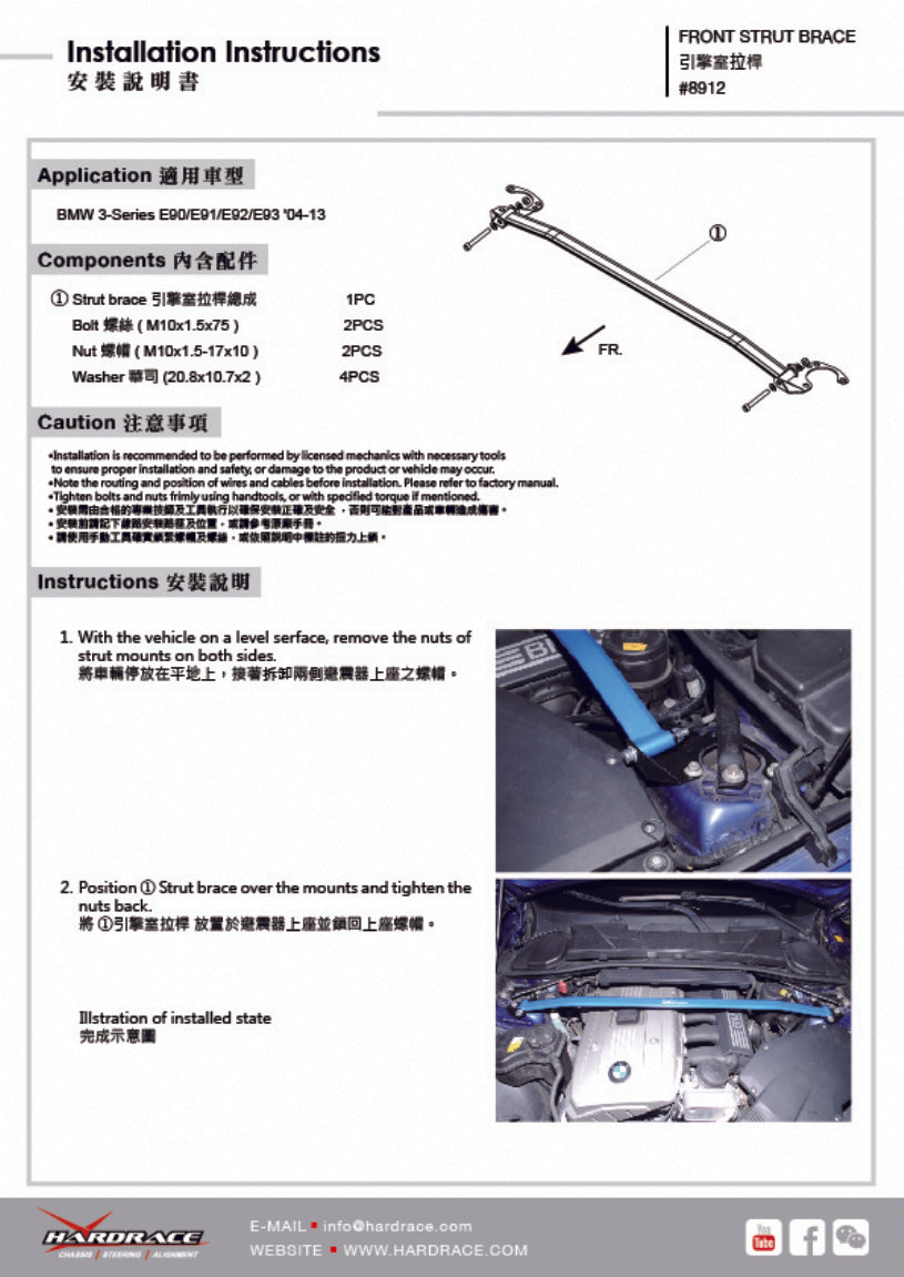 Front Strut Brace for BMW 3 Series E90/E91/E92/E93 2005-2011