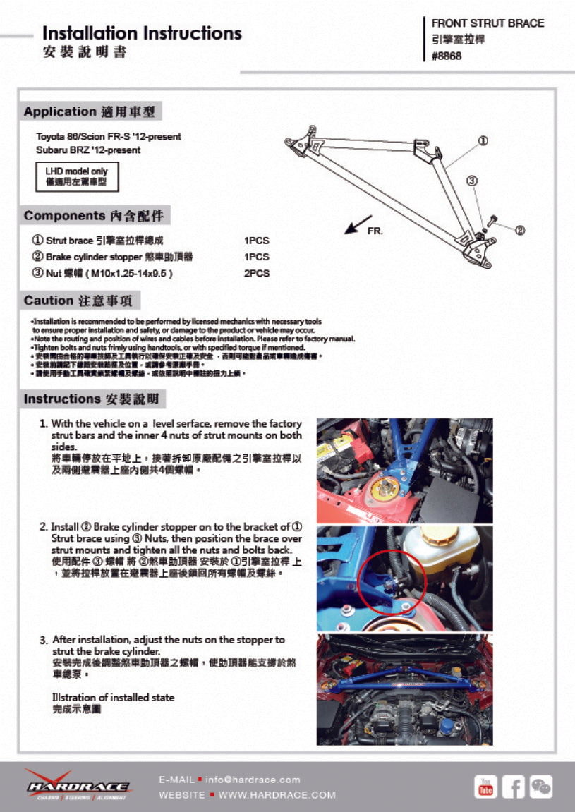 HARDRACE is proud to announce the new front strut bar. The strut bars are designed to tie the tops of your struts together