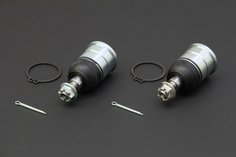 Hardrace Front Roll Center Adjusters are Extended Ball Joints that will alter your suspension geometry. They are designed to use with lowered vehicles, it helps correct the suspension geometry of a lowered car, putting the control arms back closer to its original position, resulting in increased steering response and stability while eliminating bump steer.