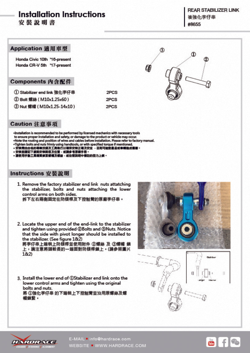 Hardrace Rear Stabilizer Links 2pcs/set Civic 10th FC / FK8 Type-R CRV-5th 2017-up