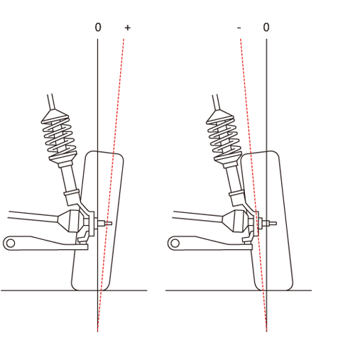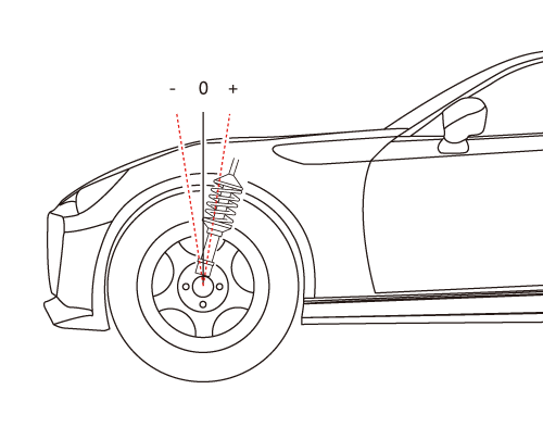 Caster is the angle of the front strut when seem from the side of the vehicle. If the steering axis is tilted rearward, it is called "Positive Caster". A forward tilt is called "Negative Caster". Generally speaking, positive caster can increases stability at high speeds. Positive caster also causes increased steering effort at low speeds. Having to run less static camber improves traction, reduces tries wear and improves the cars potential braking abilities through improved grip. In addition to increased high speed stability, cornering is enhanced and steering wheel return ability is improved by positive Caster. This generates additional feedback so giving the driver more communication with what the tries are doing. HARDRACE adjustable caster arms help you to adjust caster accurately.