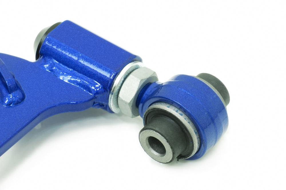 The camber kit allows fine adjustments to the front end camber setting of the vehicle. It can either help maximize wheel contact patch to improve cornering grip or get your car back to original alignment specs after lowering to prevent uneven tyre wear. The arms are made of steel alloys to offer greatest strength and durability. The premium quality harden rubber bushings and ball joints equipped also provide much more precise and solid handling response over the factory components.