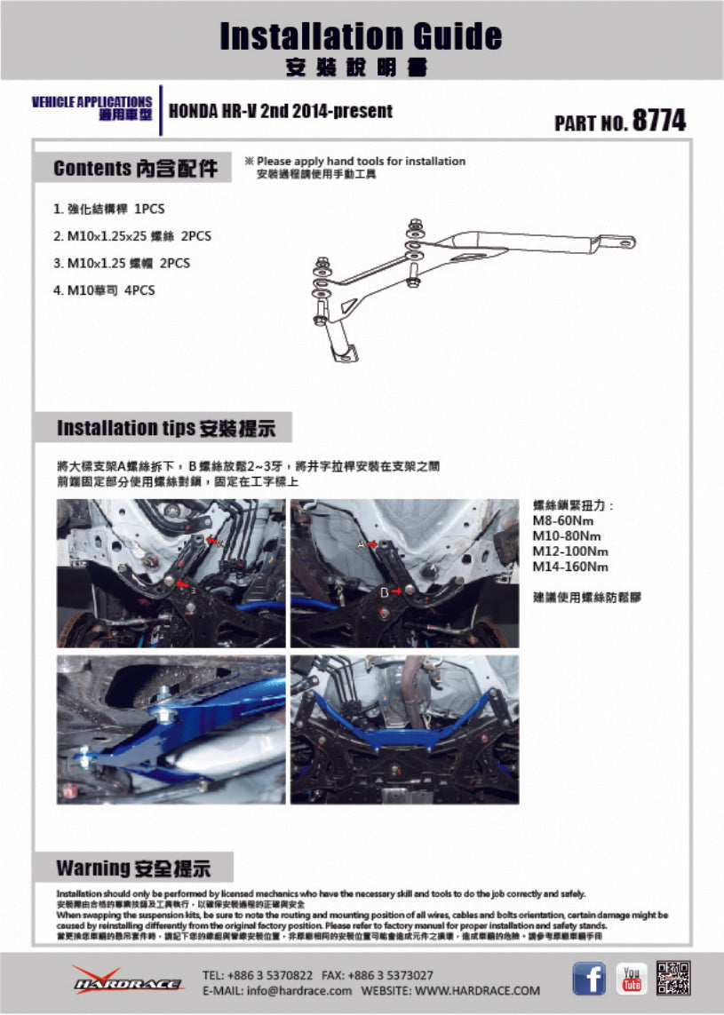 HARDRACE is proud to announce the new front middle brace for HONDA HR-V. The brace is designed to improve handling and chassis rigidity.