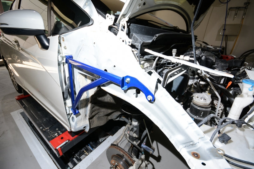 HARDRACE Front Fender Brace are designed to stiffen up the chassis and reduce vehicle chassis flex. This will increase the rigidity of your car during high speed driving and hard cornering. This is why HARDRACE Front Fender Brace can maximizes the performance of the suspension and brings better handling feeling and quicker response.