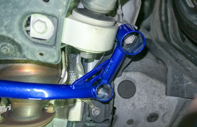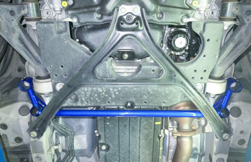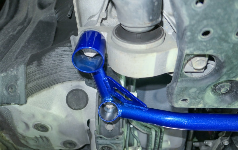 HARDRACE Front Lower Brace are designed to stiffen up the chassis and reduce vehicle chassis flex. This will increase the rigidity of your car during high speed driving and hard cornering. This is why HARDRACE Front Lower Brace can maximizes the performance of the suspension and brings better handling feeling and quicker response.