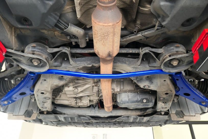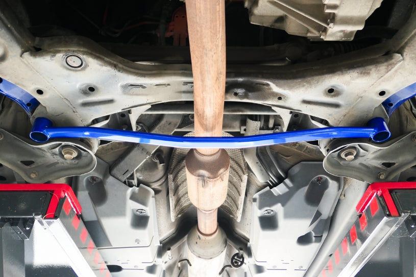 HARDRACE Front Lower Brace are designed to stiffen up the chassis and reduce vehicle chassis flex. This will increase the rigidity of your car during high speed driving and hard cornering. This is why HARDRACE Front Lower Brace can maximizes the performance of the suspension and brings better handling feeling and quicker response.