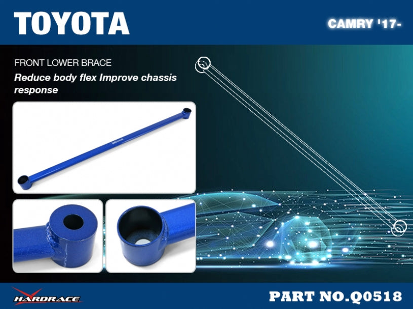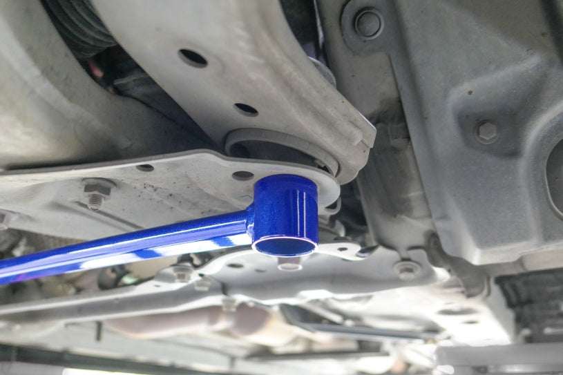 HARDRACE Front Lower Brace are designed to stiffen up the chassis and reduce vehicle chassis flex. This will increase the rigidity of your car during high speed driving and hard cornering. This is why HARDRACE Front Lower Brace can maximizes the performance of the suspension and brings better handling feeling and quicker response.