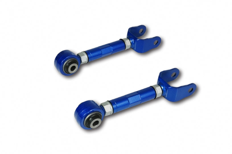 Toe arms allow for fine-tuned adjustments to the rear toe in/out setting of the vehicle. It helps to raise straight line stability and road control. Toe arms are made with high-strength steel alloys to offer high durability, strength and yet remain light-weight.